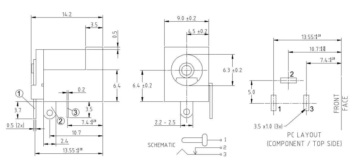 DC Power Jack Supply Socket 5.5×2.1mm is a good quality power connector compatible with all 5.5 male power jack from different sources. It is a 2.1×5.5mm mountable jack widely used in DIY hobby projects as well as in many robotics applications for DC supply voltage connection up to 30 V.